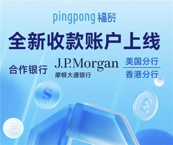目前PingPong 福貿(mào)J.P.Morgan(摩根大通)全球收款賬戶,已經(jīng)正式上線!