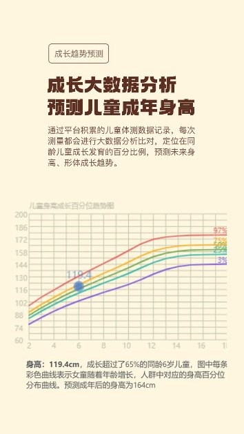 以宅客智能體測儀K2為例,這款是專門為3-17歲以下的青少年兒童定制,更是開展兒童早期發(fā)展評估的專業(yè)設備。其中身高和體重是衡量兒童成長發(fā)育和營養(yǎng)狀況最重要、最敏感的指標。兒童體格生長的評價應有權(quán) 威的標準來做支撐,這樣才能保證評價結(jié)果的科學性和可信性。而對于評價的方法,宅客選用成長趨勢預測曲線圖,其優(yōu)點是能直觀反映生長水平和變動規(guī)律;計算簡單、曲線光滑、年齡連續(xù),可動態(tài)評價;評價結(jié)果易于解釋和理解,家長容易看懂。