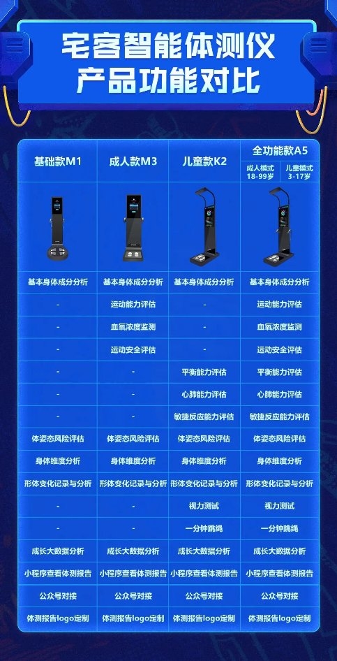 如今,優(yōu)質(zhì)的體測服務已經(jīng)是大健康行業(yè)的標配之一,如何選擇一臺功能完備、科技智能、顏值在線的體測設備,相信通過今天的文章,大家已經(jīng)心中有數(shù)了。隨著疫情結(jié)束,2023年起將邁入全民健身時代,大健康領域必定掀起一股股浪潮。更多關于智能體測與大健康的內(nèi)容,歡迎關注宅客科技,和我們一起探索人體數(shù)據(jù)與健康管理!