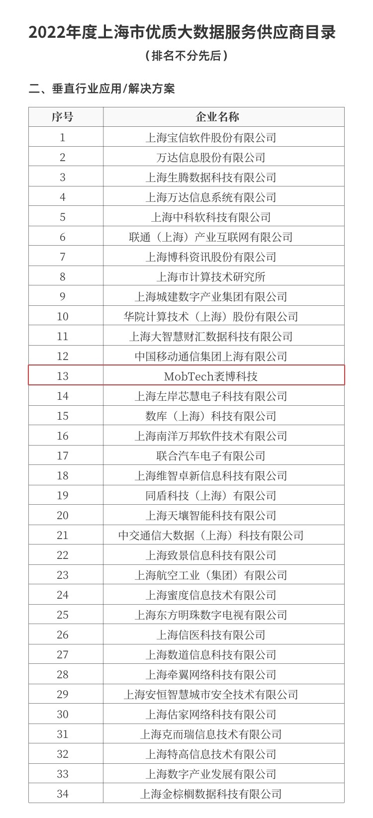 近日,上海市經(jīng)濟(jì)和信息化委員會(huì)發(fā)布了“2022年度上海市優(yōu)質(zhì)大數(shù)據(jù)服務(wù)供應(yīng)商目錄”,MobTech袤博科技與移動(dòng)、聯(lián)通、萬達(dá)信息、第 一財(cái)經(jīng)等知名企業(yè)共同入選。這也是繼2020年入選后,企業(yè)再度入圍該目錄。