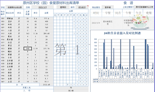 1、出庫的同時(shí)完成記賬、食譜和人均營養(yǎng)元素?cái)z入計(jì)算,真所謂“一箭四雕”;一鍵選擇庫存物品列表,超庫存錄入警告提示,營養(yǎng)素人均攝入量瞬間計(jì)算,真正實(shí)現(xiàn)帶量用餐。
