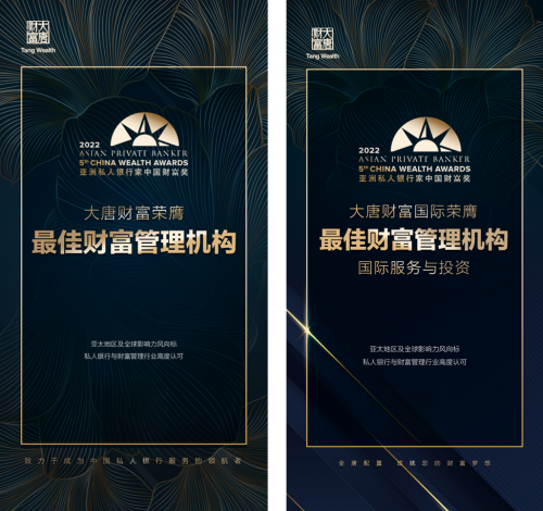 除了連續(xù)多年獲得投中榜單認(rèn)可之外,大唐財富也先后獲得了國際權(quán)威媒體《亞洲私人銀行家》評選的2022年度“最 佳財富管理機(jī)構(gòu)獎”“最 佳財富管理機(jī)構(gòu)-國際服務(wù)與投 資獎”;胡潤百富評選的2022“年度財富管理機(jī)構(gòu)最 佳表現(xiàn)獎”等國際大獎;