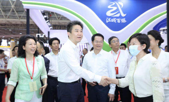 襄陽(yáng)館展廳,副市 長(zhǎng)龍小紅率領(lǐng)襄陽(yáng)40余家企業(yè)組團(tuán)參展