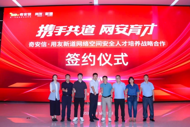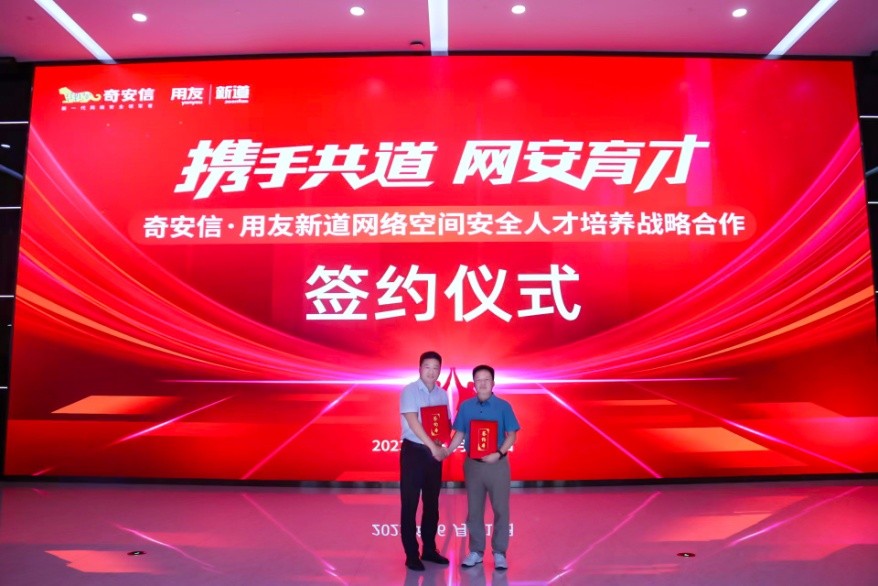2023年6月21日,奇安信·用友新道網(wǎng)絡(luò)空間安全人才培養(yǎng)戰(zhàn)略合作簽約儀式隆重舉行,雙方達(dá)成了“合作共贏、篤行致遠(yuǎn)”的戰(zhàn)略共識(shí),標(biāo)志著奇安信科技集團(tuán)股份有限公司與新道科技股份有限公司將共同攜手,開(kāi)啟網(wǎng)安人才培育新征程。