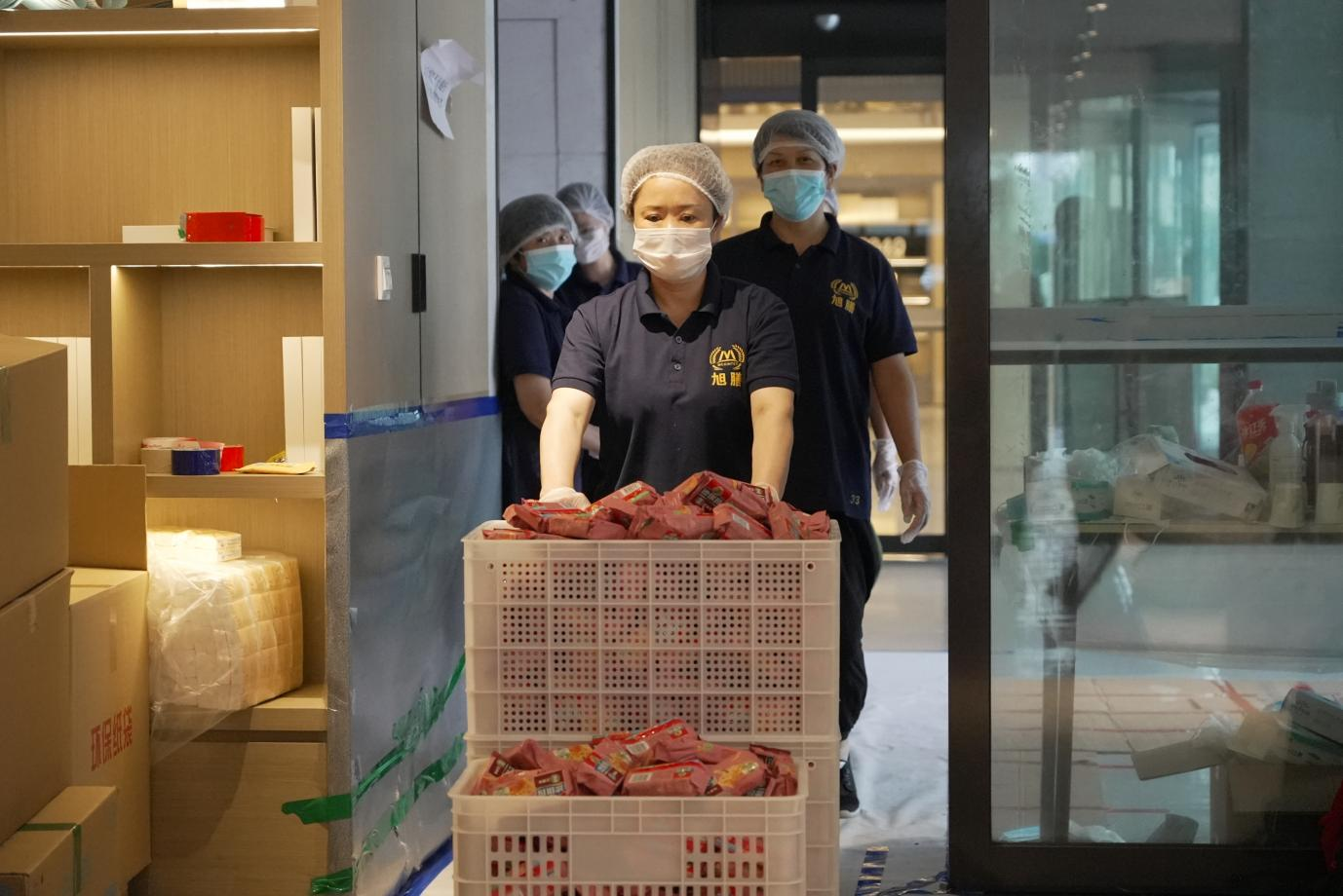 圖片:工作人員在準(zhǔn)備餐食