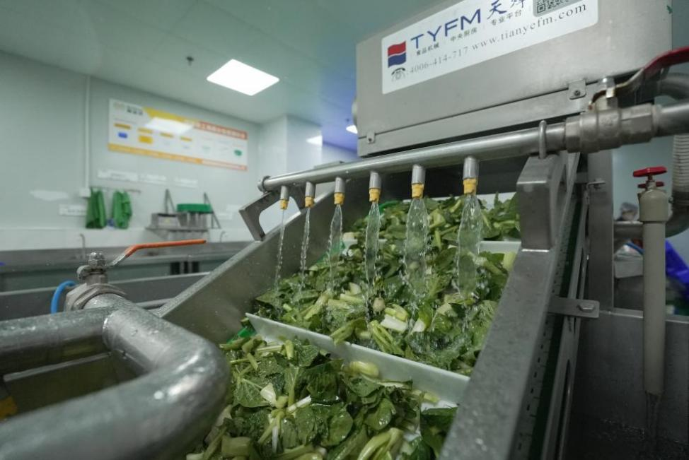 圖片:自動(dòng)化機(jī)器正在清洗蔬菜