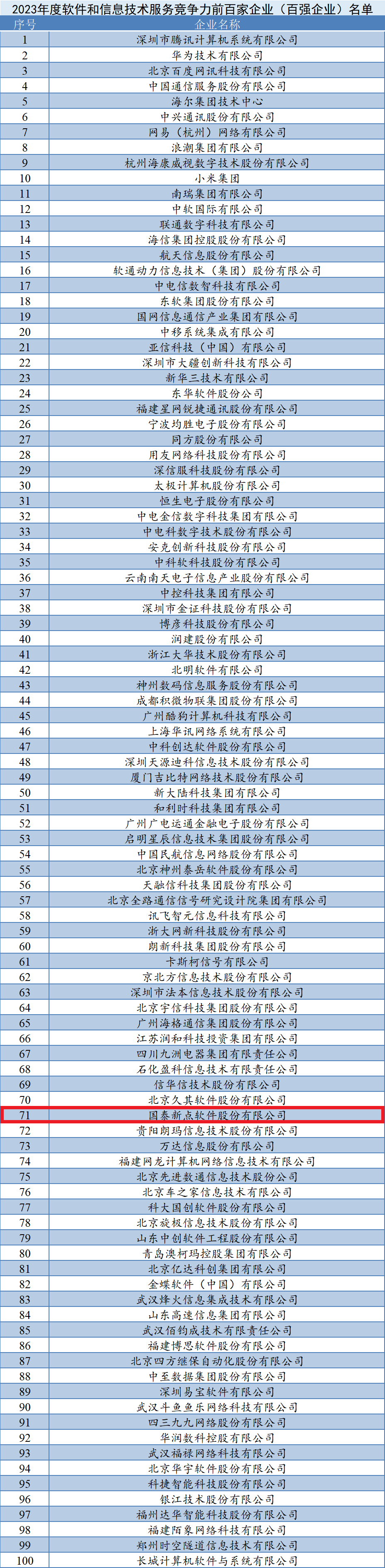 2023年度軟件和信息技術(shù)服務(wù)競爭力百強企業(yè)榜單
