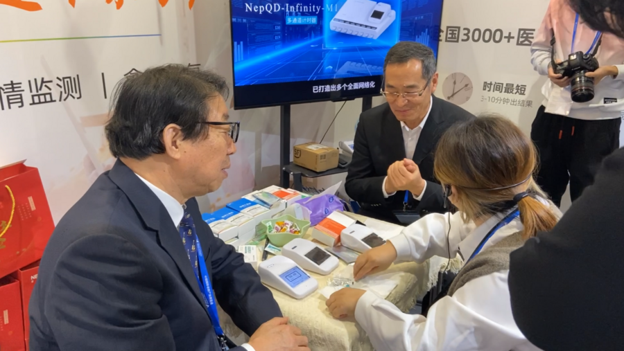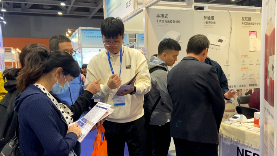 本屆展會上,量點科技攜帶了各類適用于老年慢病疾病監(jiān)測的量子點免疫熒光體外診斷試劑和干式免疫熒光分析儀亮相展臺,吸引了眾多養(yǎng)老行業(yè)參會者前來交流探討。