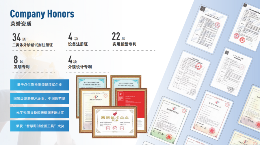 以高效熒光量子點為核心技術(shù)和材料,用于開發(fā)在醫(yī)學診斷、食品安全等系列產(chǎn)品。是國內(nèi)唯一具有多型號量子點原料—診斷試劑—診斷設(shè)備全產(chǎn)業(yè)鏈的國家高新技術(shù)企業(yè)。