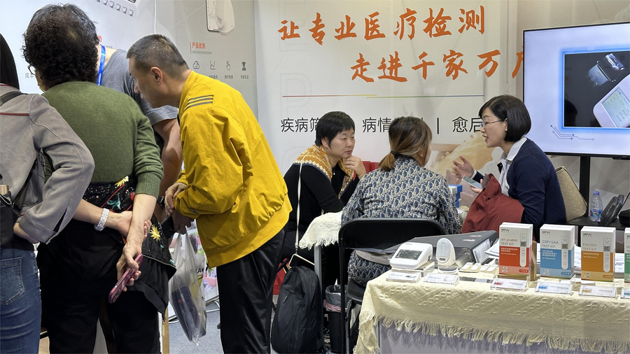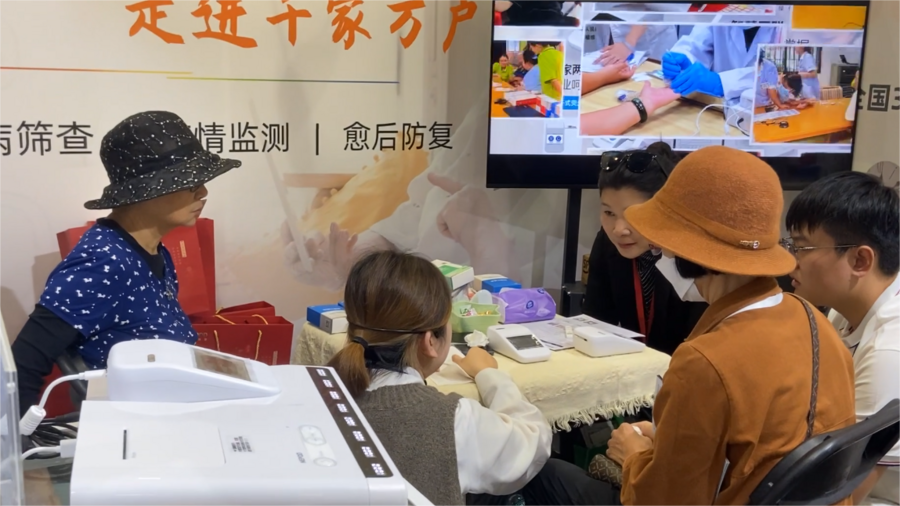 該產(chǎn)品一經(jīng)展出,引來眾多觀眾前來了解,畢竟這款產(chǎn)品能真正解決老年群體的慢病監(jiān)測以及重癥預(yù)防篩查難題。