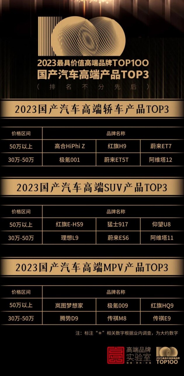 “2023高端品牌 TOP100(第二批)”榜單暨“自主品牌汽車高端產(chǎn)品 TOP3榜單”發(fā)布