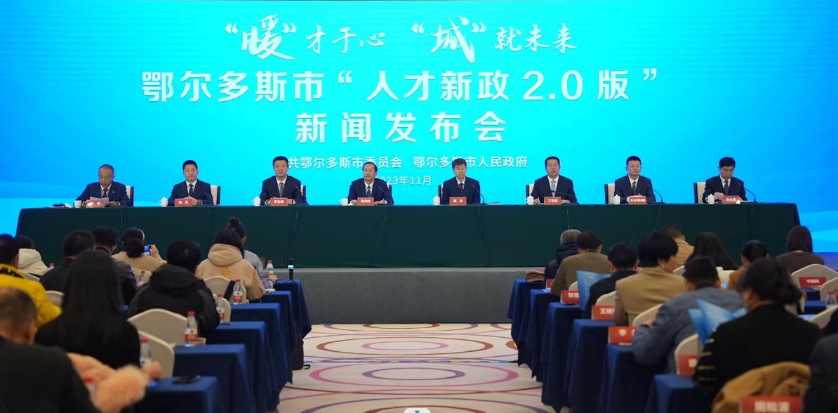 11月23日,由內(nèi)蒙古自治區(qū)鄂爾多斯市委、市人民政 府主辦的《“暖”才于心,“城”就未來——鄂爾多斯市“人才新政2.0版”》新聞發(fā)布會在北京國際飯店隆重舉行。本次會議除了邀請人民日報、新華社、中央人民廣播電視總臺、光明日報、中國日報、經(jīng)濟日報、科技日報、工人日報等權(quán)威媒體參加以外,部分國家級主要人才管理單位有關(guān)負責(zé)人、部分科研院所有關(guān)負責(zé)人、北京高校就業(yè)合作聯(lián)盟院校招生就業(yè)處有關(guān)負責(zé)人、北京部分商會、企業(yè)有關(guān)負責(zé)人、北京部分人力資源機構(gòu)有關(guān)負責(zé)人、內(nèi)蒙古自治區(qū)人民政 府駐北京辦事處有關(guān)負責(zé)人、鄂爾多斯參會領(lǐng) 導(dǎo)和在京鄂爾多斯籍優(yōu)秀人才代表、獲聘“校園引才大使”人員等共150余人參加了本次活動。