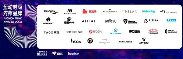 Saucony索康尼、MAIAACTIVE瑪婭、SCALER思凱樂、JORYAweekend、MSLAN、Nobaday、彳亍CHICHU、HOTSUIT后秀、TECTOP探拓、AILIAI艾力艾、初弎、MonsterGuardians、TITIKA、UTO悠途、TAGX探觀、ONEMIX玩覓、BOGA、MOTOBOY、風(fēng)謎FOOXMET、優(yōu)卡蓮YOKALAND、AIRBUM、IYOGA艾瑜嘉、LIFEMORE、脊索、yoyooblue、XAVIER3澤維爾,共26個品牌榮獲FASHIONTHINKAWARDS2023運動時尚先鋒品牌獎項。