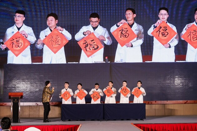 答謝會(huì)上,柏樂口腔醫(yī)生代表團(tuán)們上臺用一筆一劃寫下了充滿祝福與口福寓意的“?!弊?,他們亮出的“福”字即凝聚了柏樂最中堅(jiān)的口腔齒藝力量,也是柏樂口腔致力于用自己的雙手成就大家的好口福的初心,希望每一位客戶揚(yáng)起的嘴角都是完美的弧線。柏樂口腔精進(jìn)不止,堅(jiān)定前行地守護(hù)著每位客戶口腔健康的希望,讓所有的客戶因?yàn)橛辛税貥罚罡篮谩?/span>