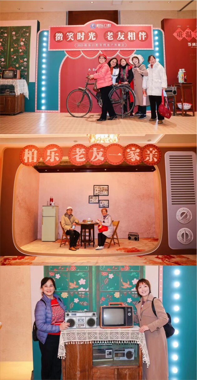 答謝會(huì)上柏樂口腔圍繞著感恩老友的主旨,以叔叔阿姨們風(fēng)華正茂的時(shí)代背景與70-80的經(jīng)典潮流為方向,力求真實(shí)完美的還原出那些充滿回憶與情懷的場景,讓柏樂的老友們沉浸在那些喜悅溫馨溫暖熟悉的氛圍里。柏樂口腔精心打造了復(fù)古年代主題合影、傳統(tǒng)非遺文化甲骨文體驗(yàn)、好運(yùn)刮刮樂、游戲贏糧票、南寧-桂林-貴陽三地地道美食傳統(tǒng)名小吃品鑒等極具特色的主題活動(dòng)區(qū),帶著柏樂老友們一起吃喝玩樂,吃嘛嘛香,笑口常開。不少老友爭相熱情拍照,品鑒美食,在結(jié)束時(shí)表示這樣的活動(dòng)讓人意猶未盡,回味無窮。