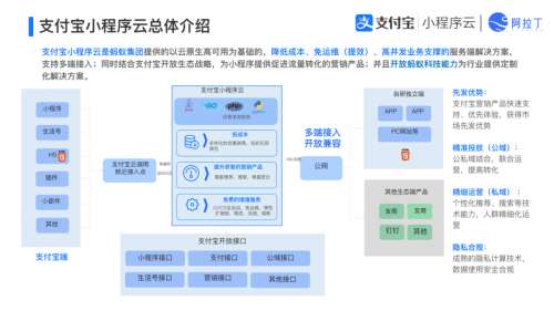 支付寶小程序云是螞蟻集團提供的以云原生、高可用為基礎(chǔ)的服務(wù)端解決方案。它支持多端接入,能夠降低成本、免除運維煩擾、支撐高并發(fā)業(yè)務(wù)需求。結(jié)合支付寶開放生態(tài)戰(zhàn)略,為支付寶小程序提供了更便捷的流量轉(zhuǎn)化途徑,提供更全面的用戶體驗。