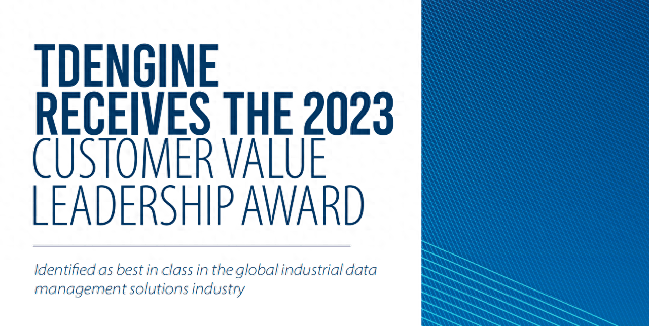 近日,TDengine 被國(guó)際知名咨詢(xún)公司沙利文(Frost & Sullivan)評(píng)為全球最佳工業(yè)數(shù)據(jù)管理解決方案,贏得了 2023 年客戶(hù)價(jià)值領(lǐng)導(dǎo)力獎(jiǎng)(Frost & Sullivan duoxie),該獎(jiǎng)項(xiàng)重點(diǎn)關(guān)注引領(lǐng)行業(yè)創(chuàng)新和增長(zhǎng)的企業(yè)。這一獎(jiǎng)項(xiàng)的授予也標(biāo)志著 TDengine 在工業(yè)數(shù)據(jù)管理解決方案領(lǐng)域的能力獲得了國(guó)際權(quán)威機(jī)構(gòu)的認(rèn)可。