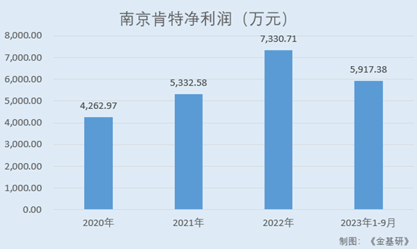 2020-2022年及2023年1-9月,肯特股份營業(yè)收入分別為2.45億元、3.17億元、3.72億元、2.96億元,2020-2022年年均復(fù)合增長率為22.24%;凈利潤分別為4,262.97萬元、5,332.58萬元、7,330.71萬元、5,917.38萬元,2020-2022年年均復(fù)合增長率為31.13%。