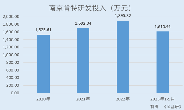 2020-2022年及2023年1-9月,肯特股份研發(fā)投入分別為1,525.61萬元、1,692.04萬元、1,895.32萬元、1,610.91萬元,2020-2022年研發(fā)投入復(fù)合增長率為11.46%。