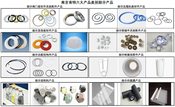 根據(jù)客戶需求,肯特股份逐漸調(diào)整、豐富生產(chǎn)鏈,目前已形成以密封件及組配件、絕緣件及組配件、功能結(jié)構(gòu)件、耐腐蝕管件、造粒料和四氟膜為主的六大產(chǎn)品類別,約3萬余種不同規(guī)格、型號的產(chǎn)品,產(chǎn)品覆蓋面廣。