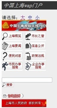 ?。?)率先全國(guó)政府網(wǎng)站提出建設(shè)"政府無(wú)線(xiàn)門(mén)戶(hù)"的目標(biāo)。2008年2月,當(dāng)大多數(shù)政府網(wǎng)站局限于以手機(jī)短信發(fā)通知作為輔助應(yīng)用的時(shí)候,"中國(guó)上海"門(mén)戶(hù)網(wǎng)站率先全國(guó)政府網(wǎng)站提出建設(shè)"政府無(wú)線(xiàn)門(mén)戶(hù)"的目標(biāo)。市民通過(guò)手機(jī)、PDA等無(wú)線(xiàn)通訊終端,就可以便捷地訪(fǎng)問(wèn)網(wǎng)站。
