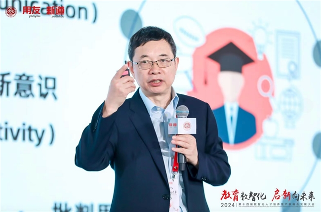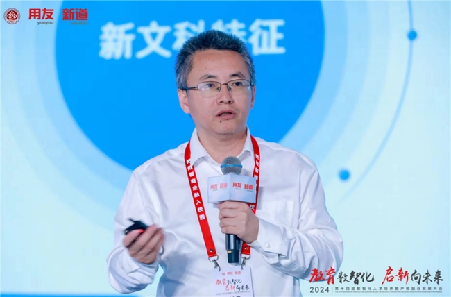 新道科技股份有限公司副總裁賈大明以“教育數(shù)智化 啟新向未來—新質(zhì)生產(chǎn)力時代下的產(chǎn)教融合新基建”為題作主題演講。他表示,發(fā)展數(shù)字經(jīng)濟就是發(fā)展新質(zhì)生產(chǎn)力,數(shù)智人才就是新質(zhì)人才,新質(zhì)人才特征是更懂硬科技、更懂?dāng)?shù)據(jù)、更懂產(chǎn)業(yè),培養(yǎng)新質(zhì)人才要圍繞能力構(gòu)建產(chǎn)教融合、運用科技構(gòu)建產(chǎn)教融合。賈大明介紹,新道科技以產(chǎn)業(yè)態(tài)勢感知平臺,聚焦人才供需適配;以產(chǎn)業(yè)鏈認知平臺,構(gòu)建產(chǎn)業(yè)全局思維;以企業(yè)認知實踐平臺,構(gòu)建企業(yè)全局思維;以商科專業(yè)創(chuàng)新平臺,構(gòu)建場景+、科技+、數(shù)據(jù)+;以工科專業(yè)創(chuàng)新平臺,構(gòu)建場景+、科技+、裝備+;以跨專業(yè)綜合實踐平臺,聚焦學(xué)科交叉綜訓(xùn);以能力訓(xùn)賽平臺,聚焦能力鑒定與競技;以數(shù)智科研平臺,助力教師科研創(chuàng)新;以產(chǎn)教融合大腦,聚焦產(chǎn)教資源平衡。賈大明表示,新道科技是產(chǎn)教融合戰(zhàn)略伙伴,能構(gòu)建用友生態(tài)全流程、多形態(tài)的閉環(huán)合作;是產(chǎn)教融合最佳伙伴,通產(chǎn)業(yè)、懂教育、富科技、有情懷;是產(chǎn)教融合務(wù)實伙伴和未來伙伴,圍繞人才培養(yǎng)的基本面開展落地行動。