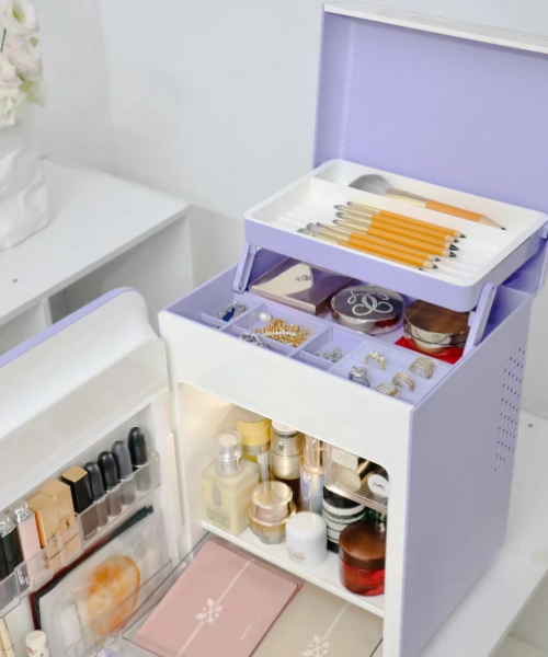 的確使用一段時間之后,我對歌嵐養(yǎng)膚美妝冰箱真的是越來越愛啊,它功能方面的表現(xiàn)真的是讓人嘎嘎滿意。收到歌嵐養(yǎng)膚美妝冰箱之后,我就把口紅、水乳、精華統(tǒng)統(tǒng)放進(jìn)去,不得不說這款是真的非常能裝,冰箱頂部還有專門放置化妝工具和首飾的地方,當(dāng)然了顏值還非常高,星黛紫的顏色特別夢幻,一下子就戳中了我的少女心。