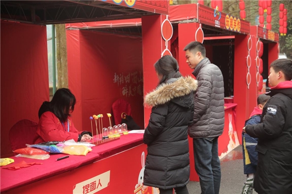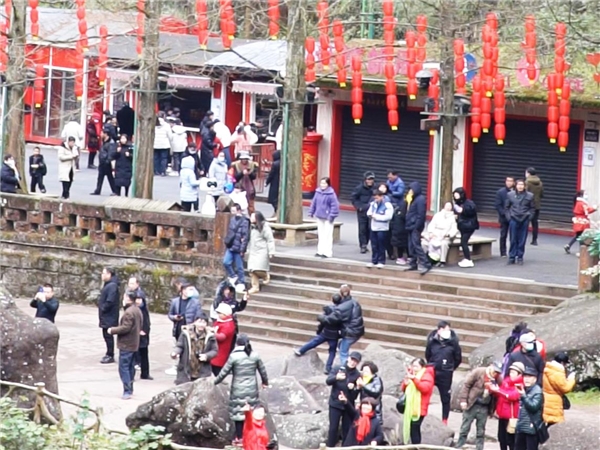 營造歡樂喜慶、紅火消費、平安祥和的佳節(jié)氛圍,是本次新春系列活動的線下部分的重中之重。春節(jié)期間,四面山景區(qū)張燈結(jié)彩、年味兒十足。龍?zhí)逗?、會龍莊、望鄉(xiāng)臺等熱門景點游人如織,游客們紛紛打卡積福抽福簽,并積極參與成語接龍等互動游戲,觀景、游樂、贏好禮。其中,位于望鄉(xiāng)臺景區(qū)的民俗市集最為熱鬧,當(dāng)?shù)剞r(nóng)特產(chǎn)深受游客喜愛,助增收、促銷費意義凸顯。
