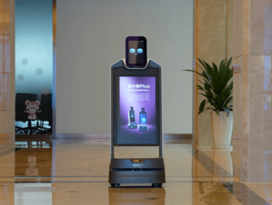 在商場、寫字樓里,豹小秘Plus是亮眼的品牌宣傳大使。它游走在樓道里,27英寸的超清大屏可以清晰地展示美圖、抖音、快手等各類視頻和多種廣告形式。在識別到顧客時,豹小秘Plus還能主動上前招攬客人,幫助商家隨時隨地進行動態(tài)宣傳。