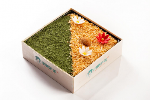 小糖茉茉家的厚切優(yōu)格提拉米蘇是直接用蒙牛酸奶速凍而成的厚切優(yōu)格來做底,出餐快,還便于切割各種造型。當厚切優(yōu)格無縫銜接斯卡彭芝士時,口感也隨之發(fā)生變化,一個厚切優(yōu)格提拉米蘇具有冰淇淋和酸奶慕斯的雙重口感,吃到嘴里涼爽、酸甜、濃香、絲滑又帶有質(zhì)感的變化,味道并不是一味的甜膩,因為有了酸奶和可可粉,所以除了酸甜可口還略微有一點苦澀,這正好和它家的茉莉拿鐵相配,在悶熱的炎夏,它們能瞬間把每個在昏昏欲睡的人拉回現(xiàn)實。