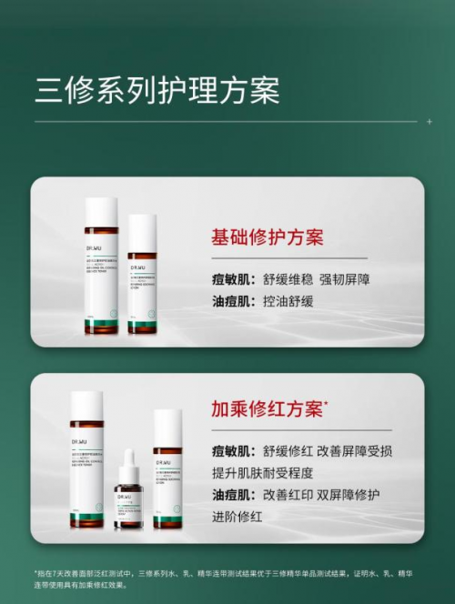 對于痘肌人群而言,解決痘痘以及淡化痘后紅印至關(guān)重要,與此同時,維持痘肌的長期穩(wěn)定狀態(tài)也刻不容緩。DR.WU達爾膚三修水乳很好地回應(yīng)了這一需求,為痘肌人群提供了更舒緩的換季肌膚屏障修護方案。