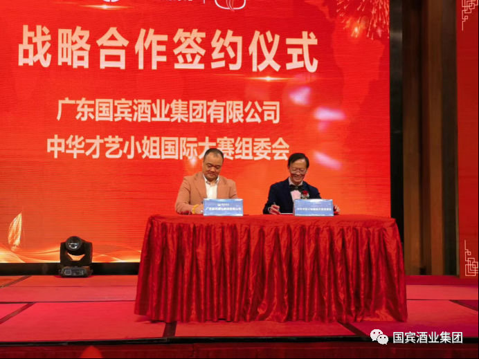 廣東國賓酒業(yè)集團(tuán)與中華才藝小姐國際大賽組委會舉行簽約儀式。并授予中華才藝小姐國際大賽組委會“國賓酒業(yè)玉皇后玫瑰醬酒戰(zhàn)略合作伙伴”