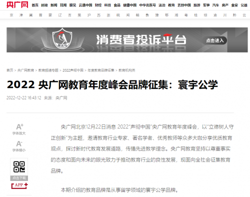 我司也在2022年成功入選中央電視臺央廣網(wǎng)教育年度峰會征集品牌,也在騰訊新聞教育年度高峰論壇上成功獲得了“2022年度留學服務知名品牌”的稱號。更是在2023年在全國企業(yè)信用公司平臺上被評估為AAA級信用企業(yè)。