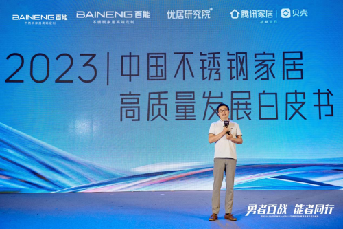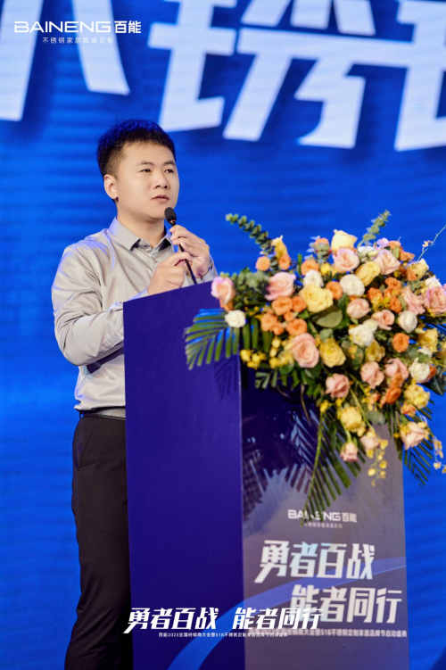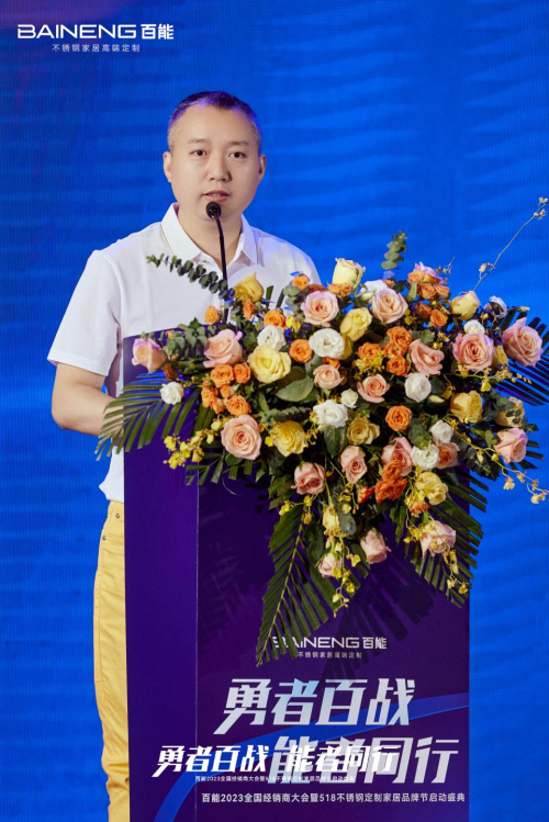 隨后,百能家居總經(jīng)理王文閂正式發(fā)布百能518不銹鋼定制家居品牌節(jié)。王總表示,不銹鋼定制家居品牌節(jié)有助于為行業(yè)形成一個(gè)可持續(xù)的品牌資產(chǎn),使行業(yè)的市場(chǎng)開拓呈現(xiàn)更大的精度與深度,觸達(dá)更多消費(fèi)者。從而讓不銹鋼定制家居行業(yè)進(jìn)入到一個(gè)更成熟的行業(yè)形態(tài)。