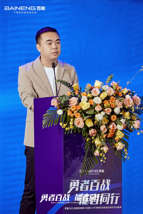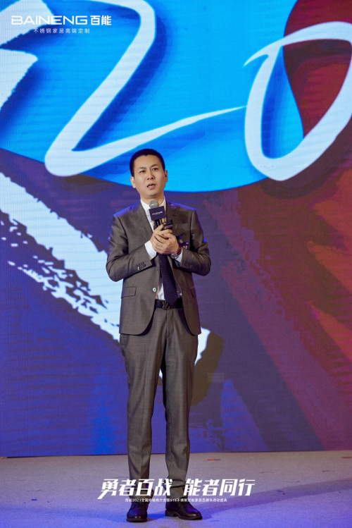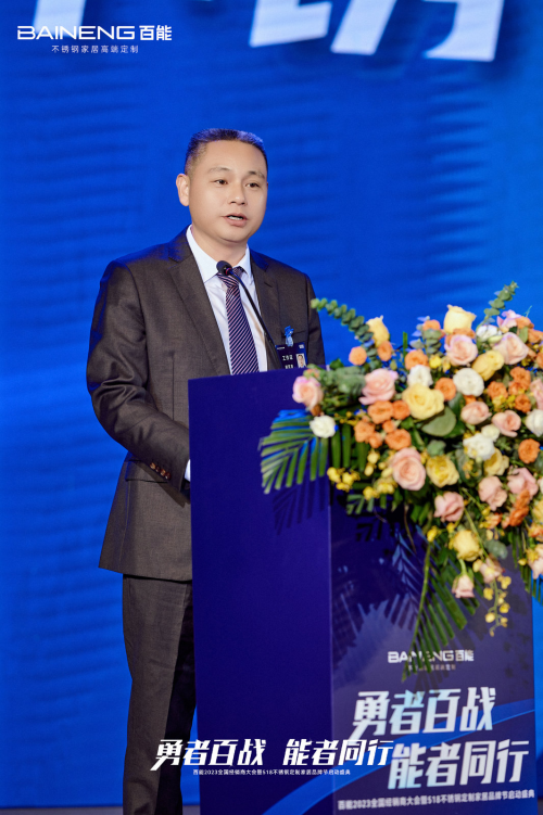 廣東省定制家居協(xié)會(huì)秘書長(zhǎng)曾勇致辭,他表示目前消費(fèi)市場(chǎng)品質(zhì)升級(jí)趨勢(shì)明顯,消費(fèi)者迫切需要更高品質(zhì)的家居產(chǎn)品,百能作為不銹鋼定制家居品類的冠軍企業(yè),擁有非常大的發(fā)展機(jī)遇與發(fā)展紅利,憑借對(duì)不銹鋼定制家居的極致熱愛,百能一定能行穩(wěn)致遠(yuǎn)。
