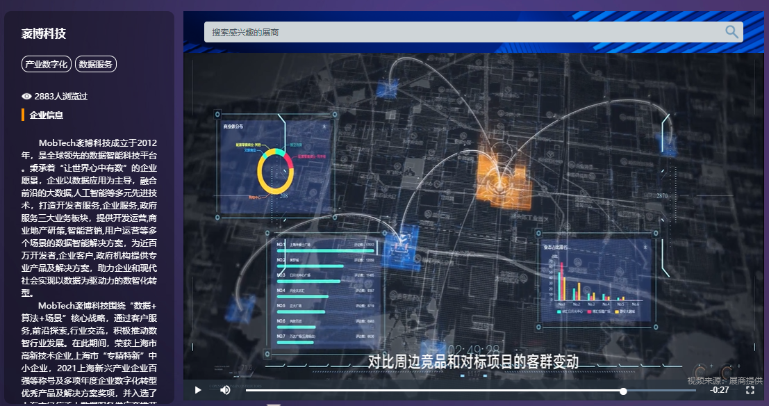 由國家發(fā)展和改革委員會、工業(yè)和信息化部、國家互聯(lián)網(wǎng)信息辦公室、貴州省人民政 府共同主辦,以“數(shù)實相融 算啟未來”為主題的2023中國國際大數(shù)據(jù)產(chǎn)業(yè)博覽會于貴州省貴陽市落下帷幕。作為數(shù)博會的“老面孔”,本次展會MobTech袤博科技攜MobTech城市商業(yè)大數(shù)據(jù)智圖SaaS平臺、LeadsUnlimited袤博商機情報管理平臺等多款前沿數(shù)智化產(chǎn)品亮相云網(wǎng)展會,與騰訊、京東、華為、百度等知名企業(yè)一起,共探數(shù)字經(jīng)濟發(fā)展新機遇。