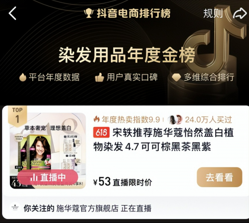 2023年618購物狂歡節(jié)火熱進行中,麗人麗妝強勢賦能合作品牌施華蔻實現(xiàn)天貓、抖音“兩開花”。明星單品怡然染發(fā)霜分別登頂天貓染發(fā)膏熱賣榜、抖音染發(fā)用品年度金榜。得益于麗人麗妝的精細化運營能力,施華蔻抖音官方旗艦店2023年全店銷售額同比去年同期增長577%。此外,施華蔻多款產(chǎn)品也登上天貓洗發(fā)水熱賣榜、修護洗護套裝熱賣榜榜單前列。
