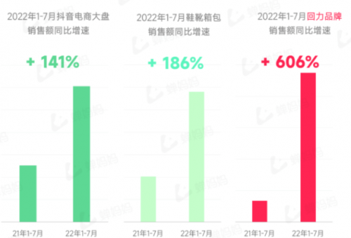 為了更好地滿足消費者的購物需求,回力品牌在電商賽道上大顯身手,不僅擁有自己的官方商城,還與各大電商平臺合作,開設(shè)品牌旗艦店。2022年,回力作為抖音鞋靴箱包的頭部品牌,品牌銷售額增長速度遠超抖音電商大盤與鞋靴箱包經(jīng)營大類,高達606%,并拿下了抖音女鞋和男鞋2022年銷量榜的雙第 一,足見品牌號召力。