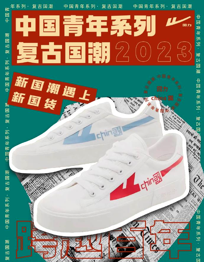 除了品牌的主動營銷,回力設(shè)計也吸引了一大批時尚達人的自發(fā)分享,包括楊冪、劉雯等明星,日常穿搭中都經(jīng)常出現(xiàn)回力的身影。而得到潮流年輕人的廣泛青睞,離不開回力的國潮風設(shè)計。回力將中國傳統(tǒng)文化當中充滿濃郁國風的國潮元素,融入現(xiàn)代的簡約設(shè)計,展示了老牌國貨的原創(chuàng)設(shè)計能力。比如最近的“中國青年系列”,回力就將“中國”的文字元素融入品牌標識的設(shè)計中,新國潮遇上新國貨,演繹了一場跨越百年的文化傳承。