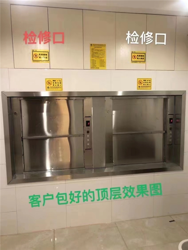 作為“菜品”的專用“雜物電梯”——傳菜電梯,服務(wù)于規(guī)定樓層(一般最 高在八層以下)的固定式升降設(shè)備,為更方便飯菜輸送、日常雜物輸送、餐具及日常用品運(yùn)輸?shù)呢浱?具有體積小、功能全、運(yùn)送平穩(wěn)、價(jià)格低廉等特點(diǎn),廣泛運(yùn)用于餐飲、賓館、機(jī)關(guān)單位食堂、學(xué)校、幼兒園、商廈等場(chǎng)所,主要用在運(yùn)送飯菜或者餐盤等方面。