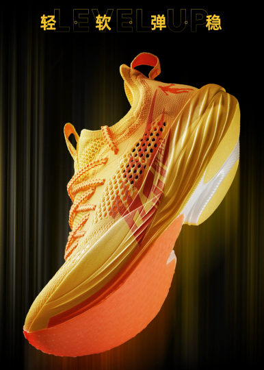 飛影PLAID碳板競(jìng)速跑鞋運(yùn)用了全新升級(jí)的巭 Pro科技,中底部分采用密度低至0.09g/cm3的TPEE 巭Pro超臨界發(fā)泡材料,在輕、軟、彈三個(gè)維度堪稱佼佼者。與運(yùn)用巭Pro科技的飛影PB 3.0相比,它的密度更低,能量回饋高達(dá)92%,緩沖性能可提升15%,更有利于跑者刷新成績(jī)。