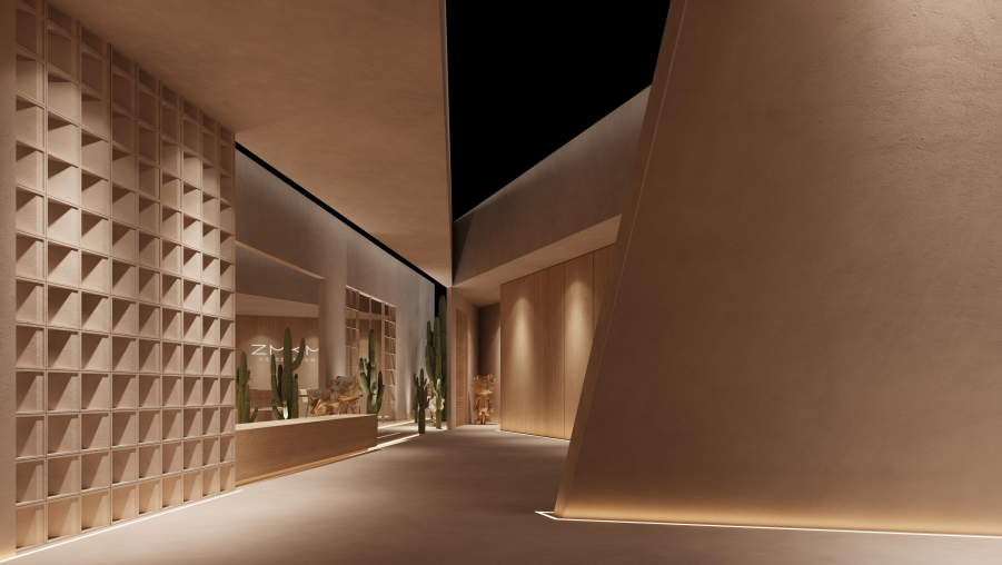 除了在加盟扶持方面帶來驚喜外,展會現(xiàn)場,ZMKM將以“沙漠綠洲”為展會主題,以土黃、綠、木色為主要色調,利用沙子、仙人掌、木紋護墻、木紋產品、斑駁的藝術、漆肌理、定制紋理地板、偏暖的燈光、定制數(shù)碼打印板等元素設計,弱化行業(yè)屬性讓空間給參觀者帶來思考,進而成為品牌跳圈的形象和載體,成功將ZMKM全屋門系統(tǒng)展示,讓觀展用戶便于住家式體驗極簡門的設計、安全等優(yōu)勢。