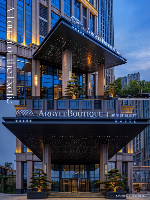 設(shè)計(jì)師將現(xiàn)代元素和傳統(tǒng)的中式風(fēng)格有機(jī)的結(jié)合起來(lái),用現(xiàn)代審美來(lái)營(yíng)造出傳統(tǒng)的韻味和感受。光影,營(yíng)造空間氛圍的催化劑,賦予空間情感,使建筑物剛性線條變得柔和。以現(xiàn)代手法將大自然奇觀改造、重塑,搬入建筑空間,以景觀、裝置小品重現(xiàn)。優(yōu)雅至簡(jiǎn)、純粹至美的門店外立面設(shè)計(jì),以恰到好處的照明燈具,構(gòu)建起酒店自然高雅、無(wú)形潤(rùn)澤身心靈的品牌基因,低奢貴族定 位亦不彰自顯。室內(nèi)設(shè)計(jì)實(shí)現(xiàn)奢華而優(yōu)雅的場(chǎng)景氛圍,將有溫度的品牌價(jià)值傳遞給每一個(gè)人。
