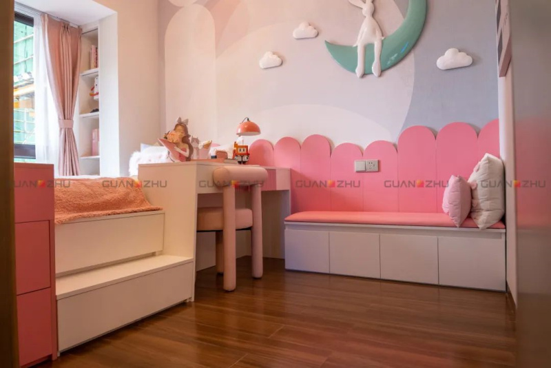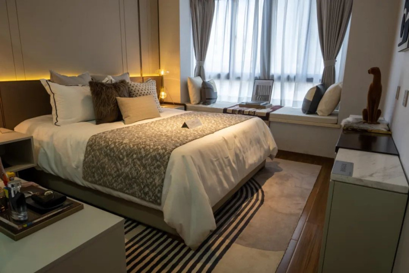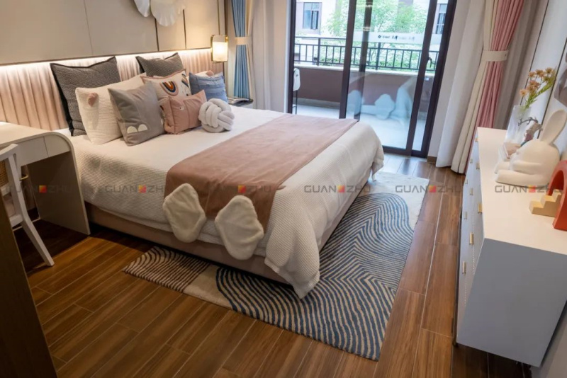 地面通鋪冠珠仿古木紋磚,搭配出多元化的臥室設(shè)計(jì),產(chǎn)品兼具耐磨、耐刮、防滑的特性,在美學(xué)之外增加實(shí)用保障。