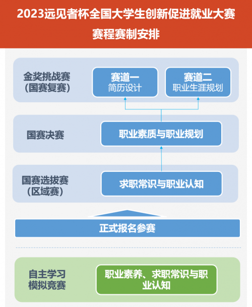 為了更好的促進就業(yè),更好發(fā)揮遠見者杯“以賽促學”的作用,幫助大學生了解求職就業(yè)中的現(xiàn)實情況,通過學習和競賽找到適合自己的職業(yè)發(fā)展定位和路徑。大賽增加了賽前培訓輔導和模擬競賽。賽前培訓輔導以視頻公開課形式作為學習資料,供參賽選手了解比賽宗旨目的、賽程組織安排、全國總決賽等常規(guī)賽的內(nèi)容范圍、金獎挑戰(zhàn)賽評分準則以及“一票否決”等重要內(nèi)容。模擬競賽定 位于幫助參賽選手了解“遠見者杯”的競賽范圍、題型設置等內(nèi)容。
