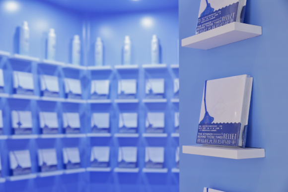 列車旁的穿越站臺(tái)和故事書亭也十分有創(chuàng)意,報(bào)刊亭頂端為發(fā)光的云朵造型,清新可愛(ài),亭里陳列著品牌故事書《頤蓮說(shuō)-那些時(shí)光背后的故事》,以及特別設(shè)計(jì)的《致熱烈的20歲》報(bào)刊,而亭上的海報(bào)則是以復(fù)古報(bào)紙的形式科普玻尿酸知識(shí),展示了頤蓮的大事記。