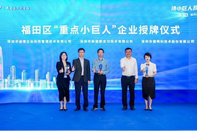 活動(dòng)現(xiàn)場(chǎng)為深圳市迪博企業(yè)風(fēng)險(xiǎn)管理技術(shù)有限公司、深圳市德明利技術(shù)股份有限公司和深圳市新國(guó)都支付技術(shù)有限公司等3家獲工信部重點(diǎn)支持的“小巨人”企業(yè)授牌,并舉辦了企業(yè)產(chǎn)銷合作及融資合作簽約儀式。此次活動(dòng)由深圳市中小企業(yè)服務(wù)局指導(dǎo),福田區(qū)工業(yè)和信息化局和福田區(qū)金融工作局主辦,深圳市新一代產(chǎn)業(yè)園和深圳市高科技企業(yè)協(xié)同創(chuàng)新促進(jìn)會(huì)執(zhí)行,以“講小巨人故事,助專精特新發(fā)展”為主題,旨在幫助專精特新企業(yè)對(duì)接上下游產(chǎn)業(yè)鏈拓展企業(yè)營(yíng)銷渠道,提升品牌影響力,并積極探索特色融資產(chǎn)品解決企業(yè)融資難問(wèn)題,進(jìn)一步支持專精特新企業(yè)高質(zhì)量發(fā)展,引導(dǎo)更多中小企業(yè)走上專精特新發(fā)展之路。