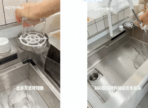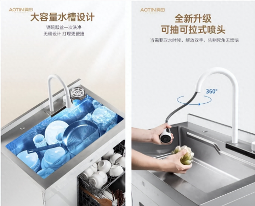相比傳統(tǒng)水槽窄小淺、菜板鍋具清洗放不下的難題,奧田采用匠心工藝,實(shí)現(xiàn)了寬深兼?zhèn)涞拇笸ú墼O(shè)計(jì),800×415mm超大空間的水槽,諸如炒鍋等中式烹飪大型鍋具也能妥妥放下,方便又省心!360°旋轉(zhuǎn)抽拉式水龍頭,清潔無死角。