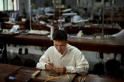 找尋、追溯,為保護(hù)中國(guó)的傳統(tǒng)非遺工藝,創(chuàng)始人遍尋中國(guó)各地臻寶首飾,花費(fèi)近20年時(shí)間籌備、興建潮宏基臻寶首飾博物館,館藏超過3000件臻品。在眾多首飾臻寶中,非遺花絲鑲嵌,其工藝之精湛,讓創(chuàng)始人為之著迷。這項(xiàng)傳承久遠(yuǎn)的中國(guó)傳統(tǒng)手工技藝,是“花絲”和“鑲嵌”兩種制作技藝的結(jié)合,也是燕京八絕里最繁復(fù)的貴金屬手工技藝,于2008年被納入國(guó)家級(jí)非物質(zhì)文化遺產(chǎn),卻一度瀕臨失傳。為了讓傳統(tǒng)文化新生,2009年,潮宏基創(chuàng)立“花絲鑲嵌工作室”,邀請(qǐng)名師出山授徒,先后培養(yǎng)了近百位年輕花絲工匠,竭力維護(hù)傳承非遺花絲工藝。