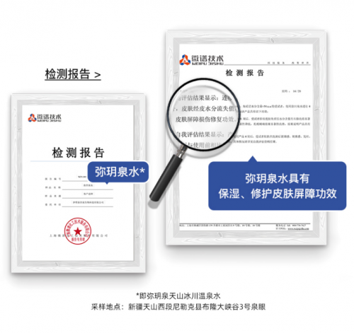 作為原創(chuàng)國貨品牌,彌玥泉一直根植新疆本土原料,不斷挖掘新疆成分,利用現(xiàn)代科技工藝,為產品賦能。其中,最核心的成分便是“天山冰川溫泉水”,也就是前文剛提到的的“彌玥泉溫泉水”。